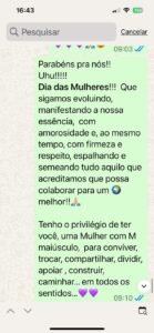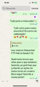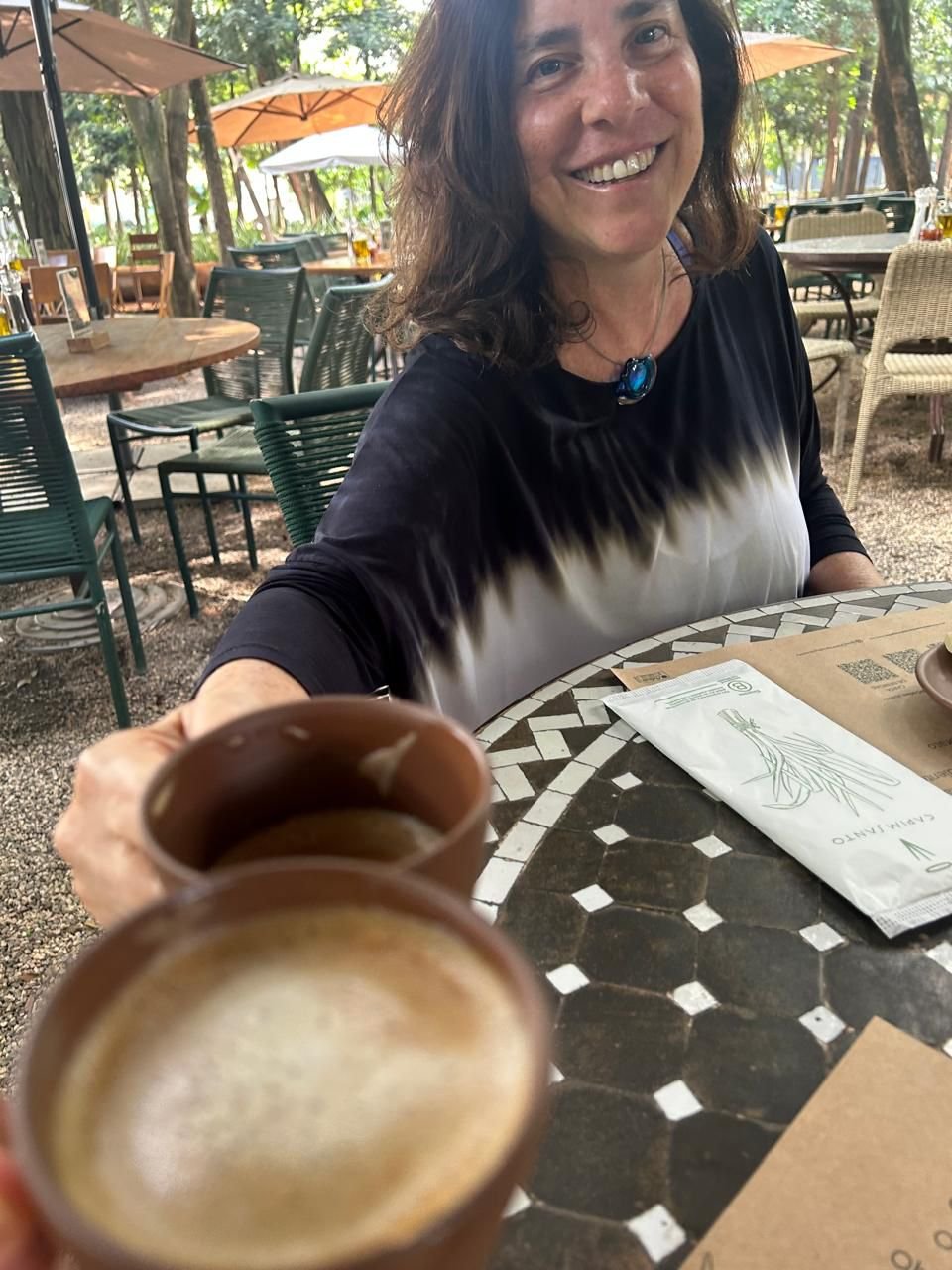 Escrevo este depoimento-declaração como agradecimento. Por todas as vezes em que digo "não é urgente, não tenha pressa" após enchê-la de áudios e reflexões e, ainda assim, ela responde imediatamente, me trazendo outros caminhos. Por todas as vezes em que ela se faz presente, disponível e leal. Por todas as vezes em que não só me encoraja a pular, mas mergulha comigo. Espero, um dia, conseguir retribuir tudo isso.